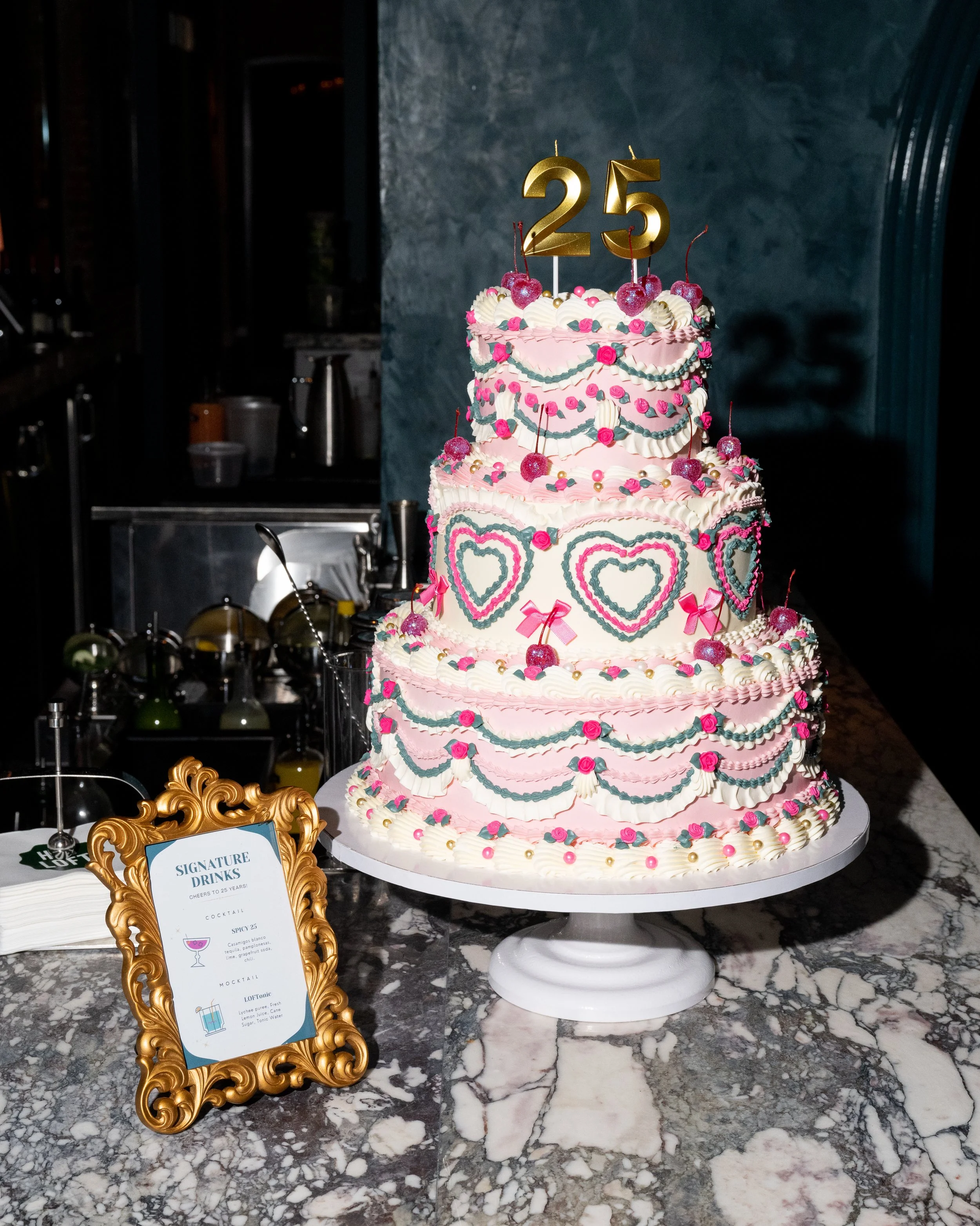 Create a visually striking cake to serve as the centerpiece of the 25th-anniversary celebration at Zero Bond. The cake needed to align with Loft’s updated branding to create a youthful + memorable moment.